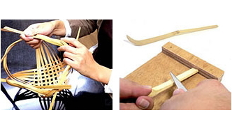 自分で作る花篭体験教室・茶杓削り教室を行っております。地元の小・中学校等への出張教室も行っております。 |