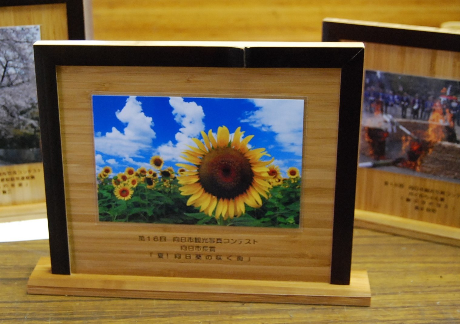 竹の表彰楯を製作し、ロゴや文字をレーザー彫刻で刻印しました。 |